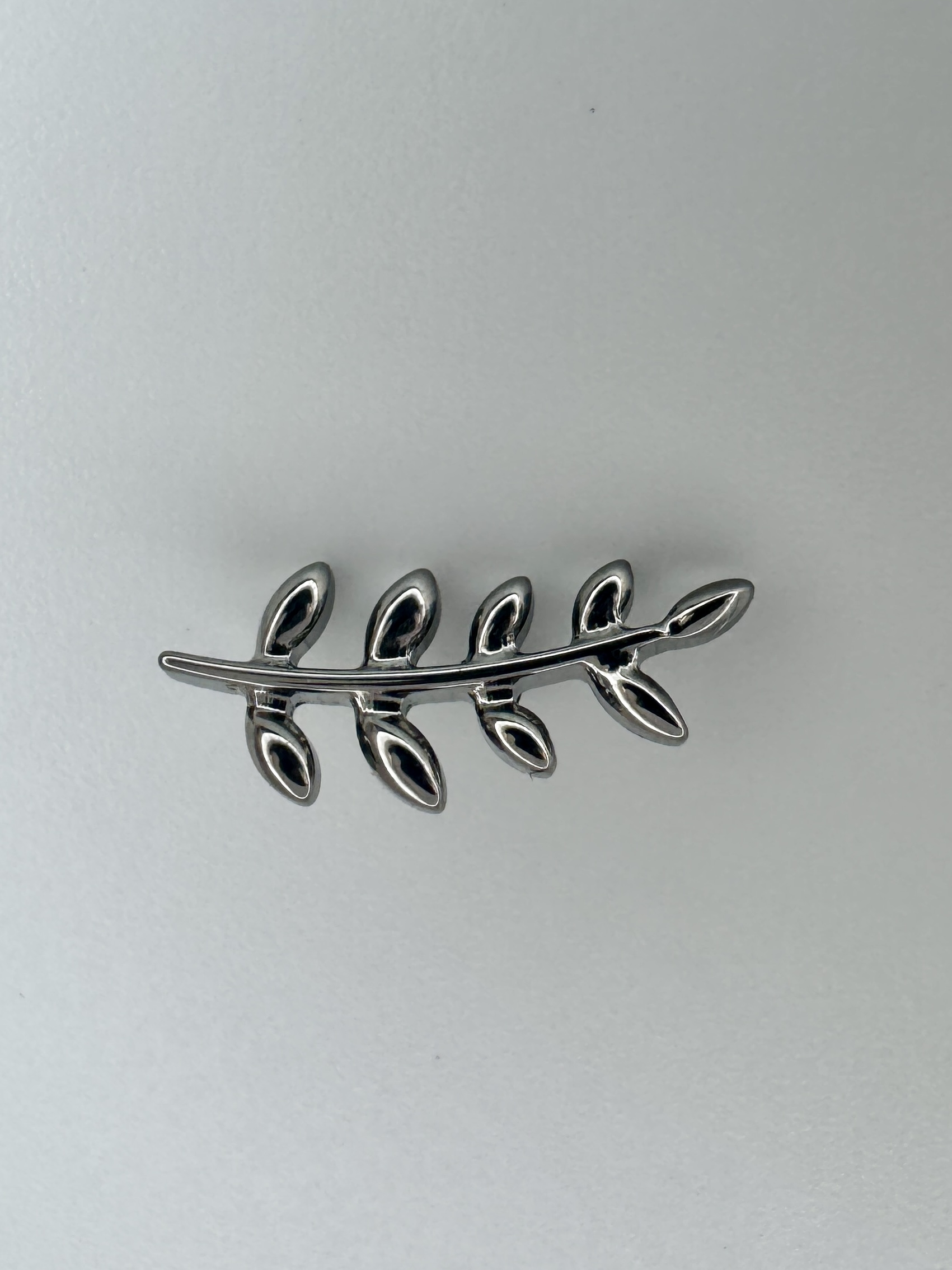 Peça polida à mão com tampa em forma de folha. O titânio pode ser anodizado em diversas cores, pelo que não é prejudicial para o corpo humano, pois não é pintado.
